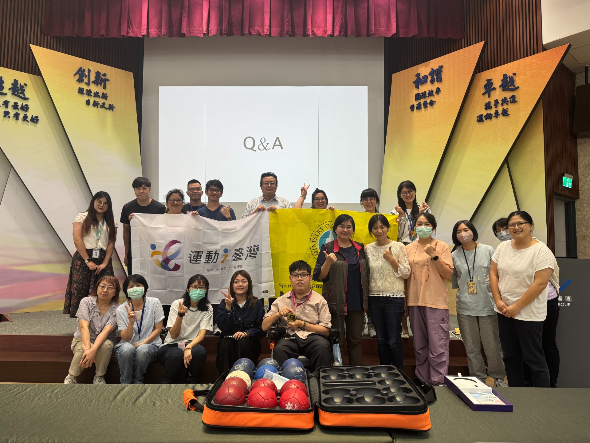 此外,巡迴團隊邀請多位金牌與優秀選手擔任講師,包括地板滾球好手劉佳昇、跆拳道國手李映萱與李晟綱、柔道國手李宛庭與林雨桑、游泳國手卓承齊,以及網球好手鄭國亨等。選手們透過互動講座與實地教學,將比賽經驗與訓練心法分享給市民,讓長者及居民在輕鬆氛圍中體驗運動魅力。C區特別安排多場金牌選手講座,內容精彩多元。在金寶電子的場次中,地板滾球好手劉佳昇以自身參與帕拉奧運的經驗,分享全障運動推廣的重要性。他以真實故事道出運動如何帶來突破與轉變,讓員工在工作之外也能體會運動堅持的力量與價值。另一場活動由網球好手鄭國亨領銜,他不僅現場示範專業動作,更引導員工體驗基礎擊球技巧,營造輕鬆活潑的運動氛圍。從競技舞台到日常生活,選手們將專業精神轉化為實用的運動體驗,讓現場員工在互動中收穫健康與能量。